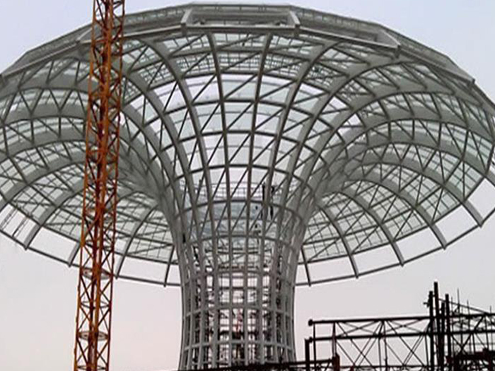 二、球形网架结构因其结构新颖,受力合理,自重轻、用钢量低等优点。如大型体育场馆球形濮阳螺栓球网架、公共场馆球形网架、电厂濮阳螺栓球网架、水泥工业球形网架、仓储物流球形网架、濮阳干煤棚工业球形网架、濮阳收费站濮阳加油站球形网架、展览中心、影剧院、商场、航站楼、候车厅、工厂濮阳车间、仓库、电视塔等球形螺栓球节点网架。国内球形网架结构主要分为:濮阳焊接球节点网架及螺栓球节点网架两种。螺栓球节点网架其构件工厂内加工量较大,现场安装便捷,适用于现场工期紧,濮阳施工条件、用电量受制约,网架形状复杂、濮阳杆件定位困难的异形结构。螺栓球节点球形网架系统基本由濮阳杆件、螺栓球、支撑支座等组成。按照节点形式可分为交叉濮阳桁架体系、四角锥体系、三角锥体系等。支撑方式多为固定支座支撑。对于大面积、大跨度及有特殊受力或伸缩要求的网架结构可采用橡胶支座、滑移支座、球铰支座等支撑形式,以满足结构自身的受力稳定、均衡,便于内力释放等设计要求。